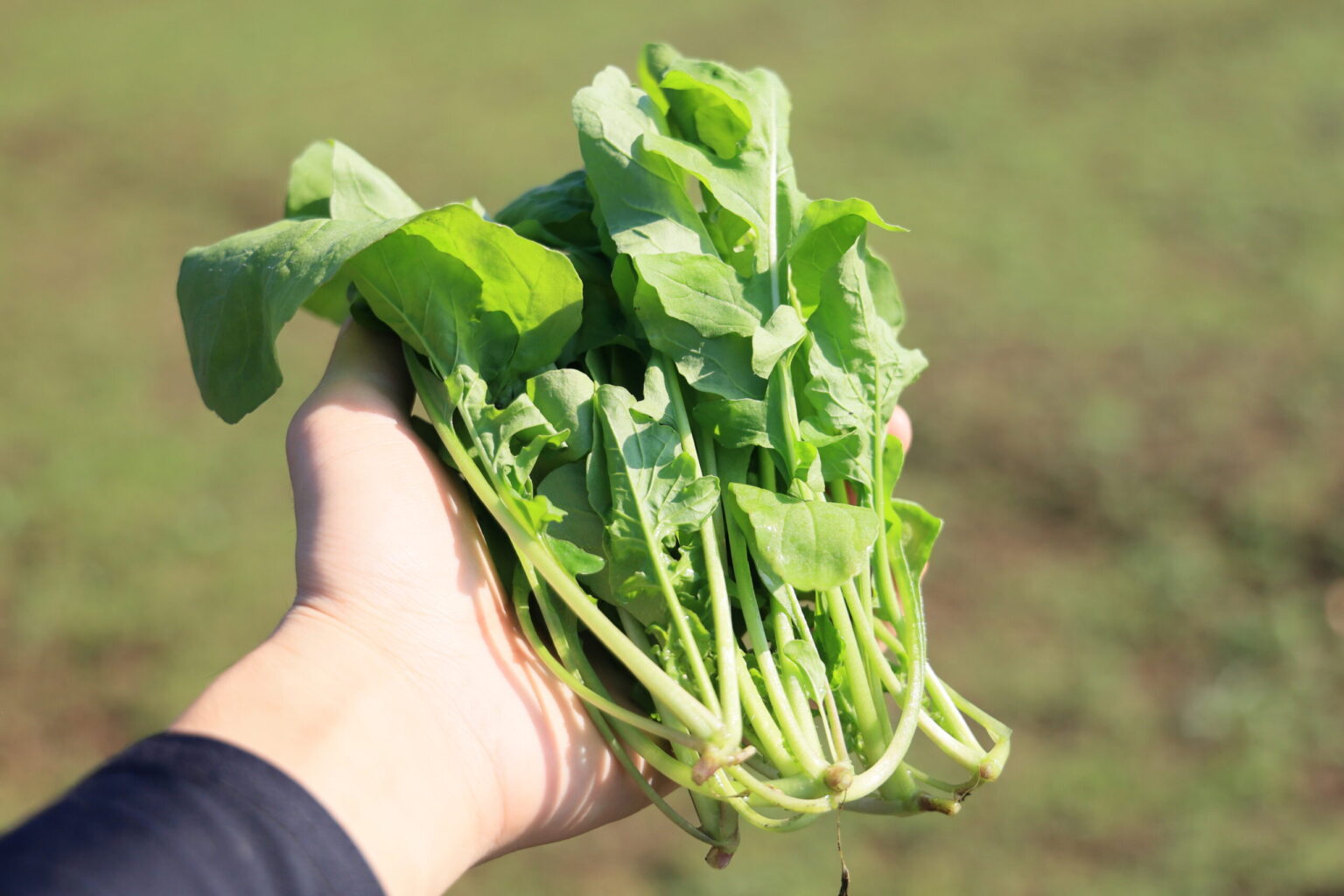 「株ごと引き抜いて収穫」は根元から株全体を丸ごと収穫する方法です。一般的な葉もの野菜と同様の収穫で、収穫は一度きりになります。