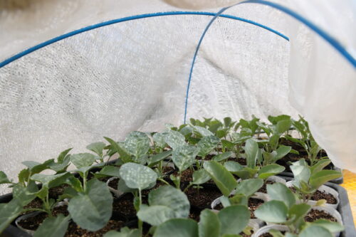 ただし、発芽したばかりの苗に真夏の直射日光を浴びせてしまうと、苗は耐えきれずに負けてしまいます。育苗期前半(発芽~本葉が出始める頃)の午前10時~午後2時頃の日差しが一番キツイ時間帯のみ遮光ネットを被せて、直射日光から苗を守りましょう!