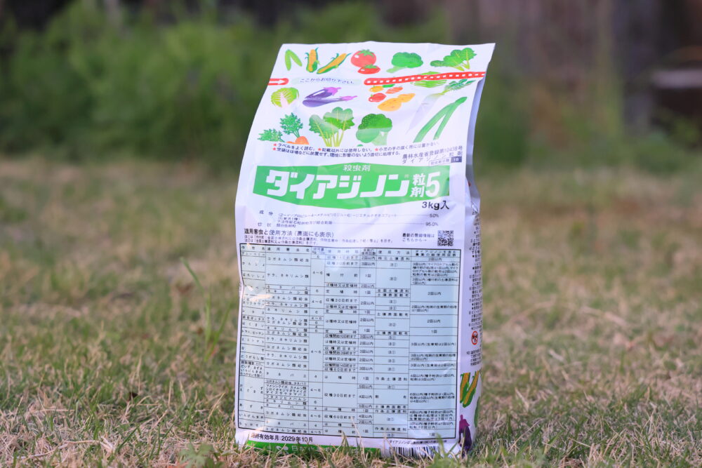 ダイアジノン粒剤5は、ネキリムシやコガネムシの幼虫などの土壌害虫対策として使われる農薬(殺虫剤)です。